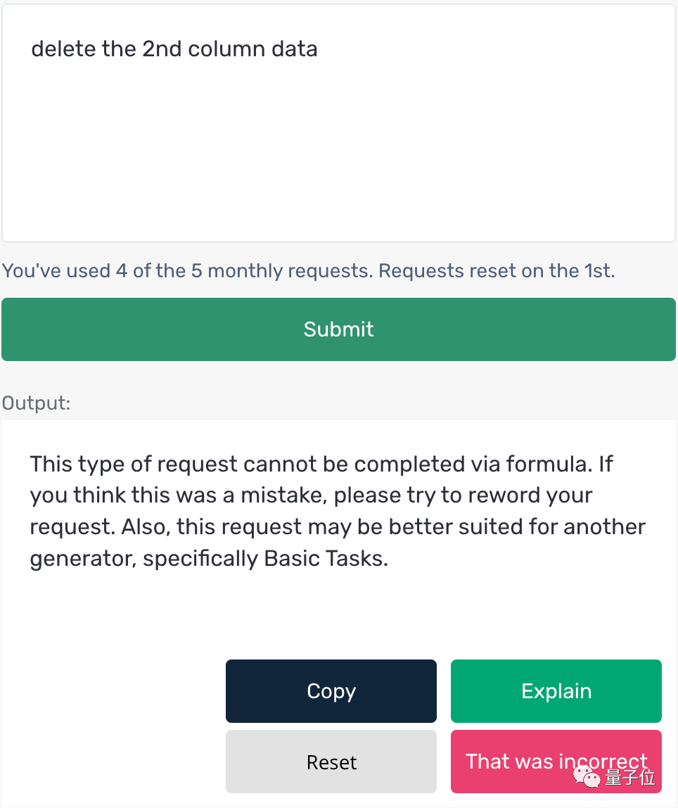 比如之前也有帮人生成Excel公式的工具,excelformulabot能实现这一功能,但它是独立在表格外的,需要自己把单元格带入到给出的公式了。