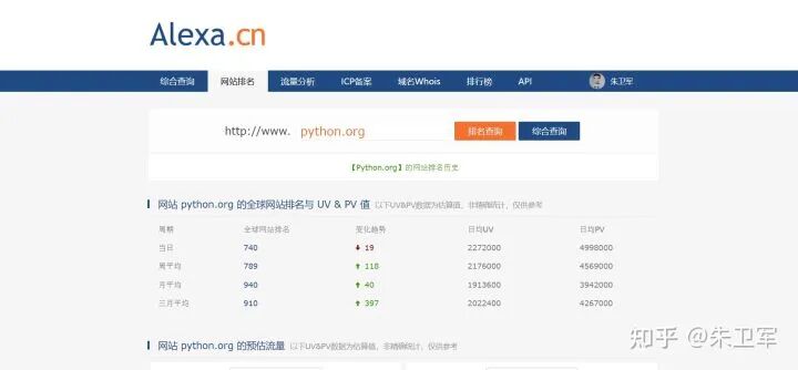 Alexa:用于查询全球网站排名和流量的平台,可以看到PV、UV、排名、区域分布等信息。