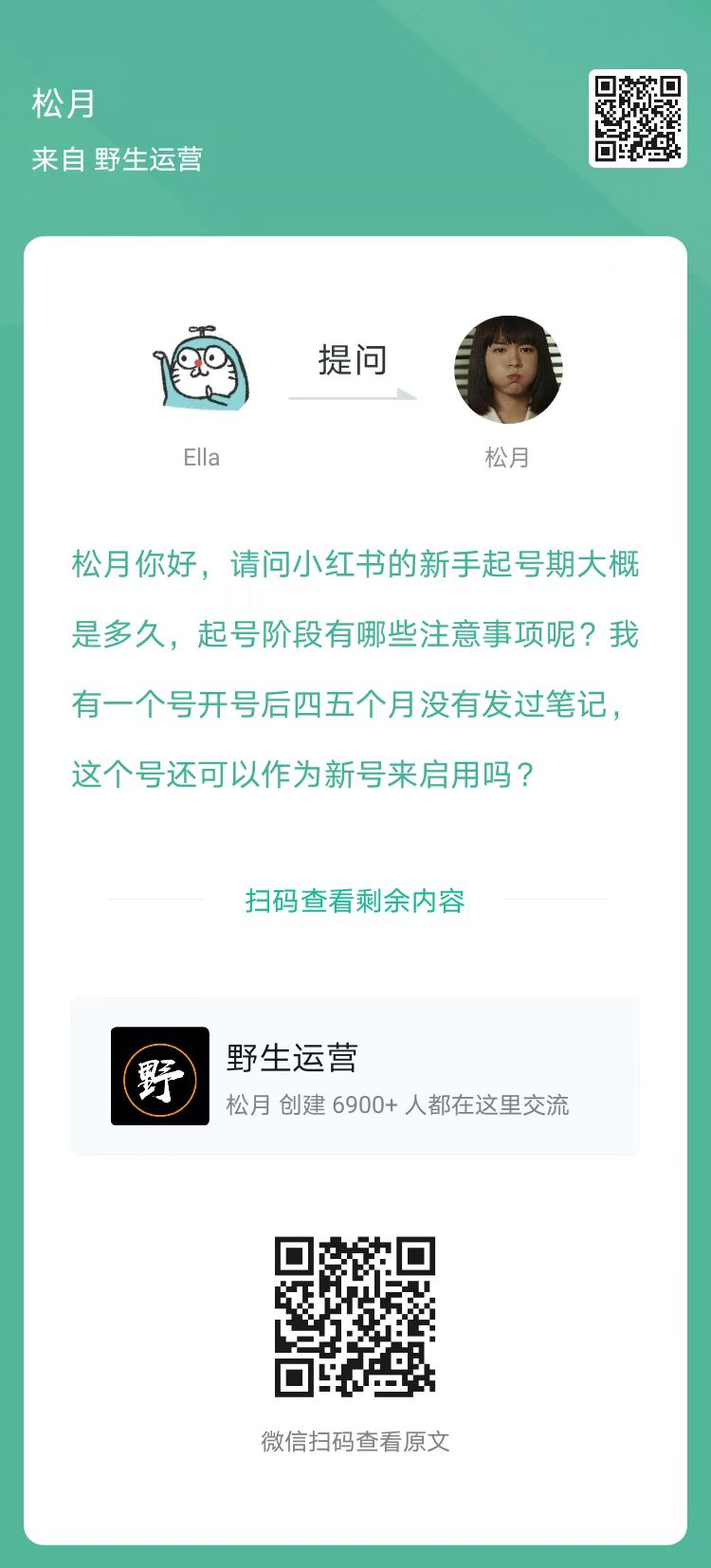 2、提问:请问小红书的新手起号期大概是多久,起号阶段有哪些注意事项呢?(扫码查看全文)