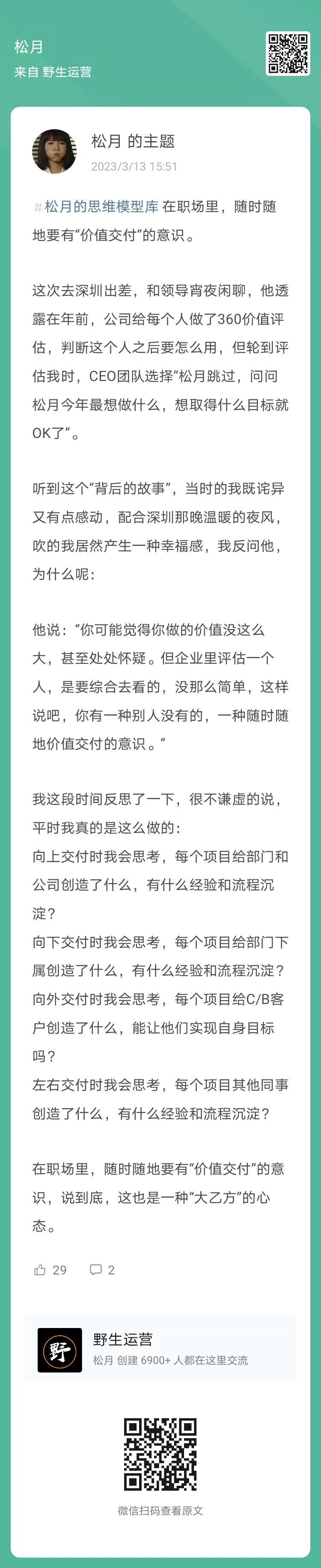 3、松月:在职场里,随时随地要有“价值交付”的意识
