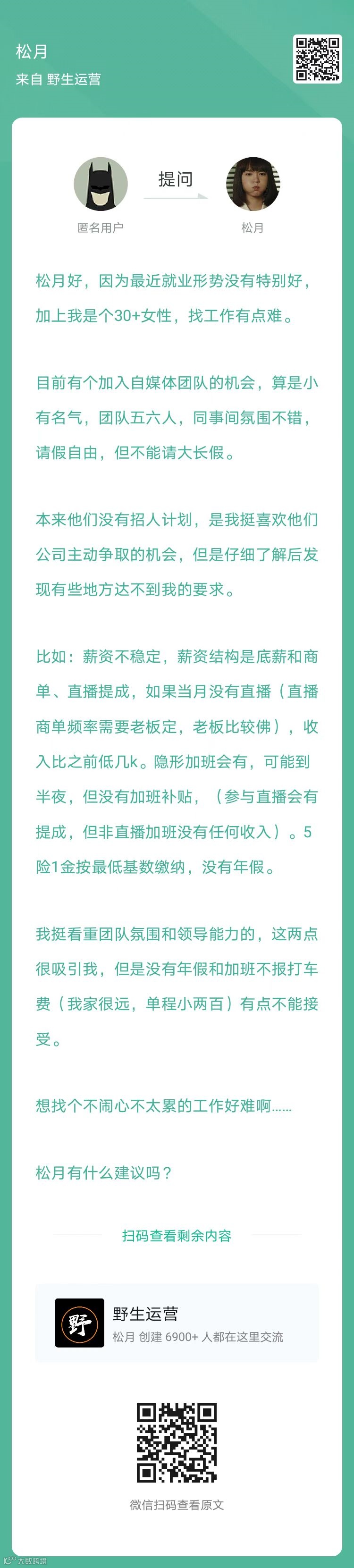 10、提问:30+女性,想找个不闹心不太累的工作好难啊,有什么建议吗?(扫码查看全文)