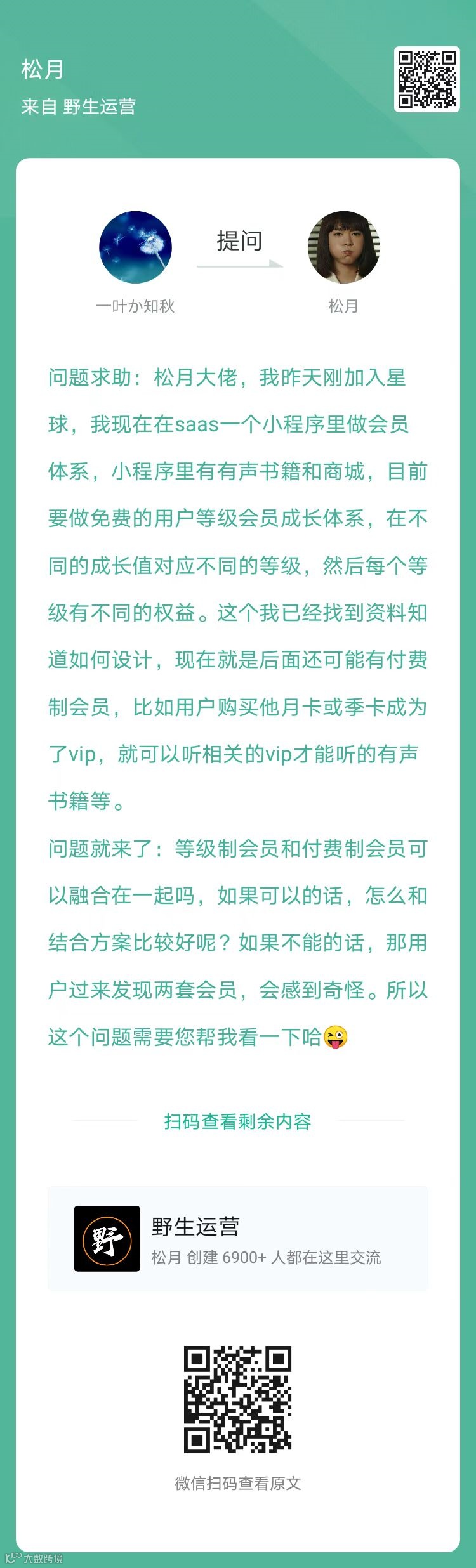 1、提问:等级制会员和付费制会员可以融合在一起吗,如果可以的话,怎么和结合方案比较好呢?(扫码查看全文)