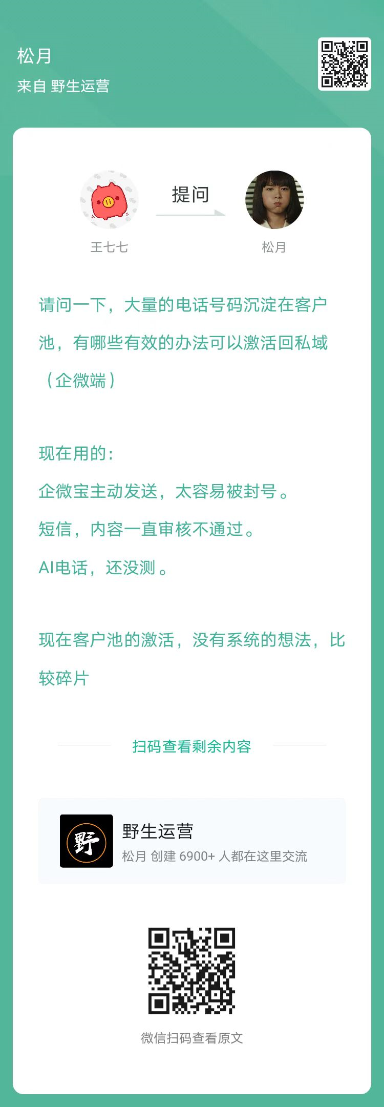 6、提问:大量的电话号码沉淀在客户池,有哪些有效的办法可以激活回私域(企微端)?(扫码查看全文)