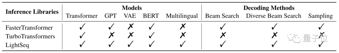 LightSeq支持的模型也是非常全面。