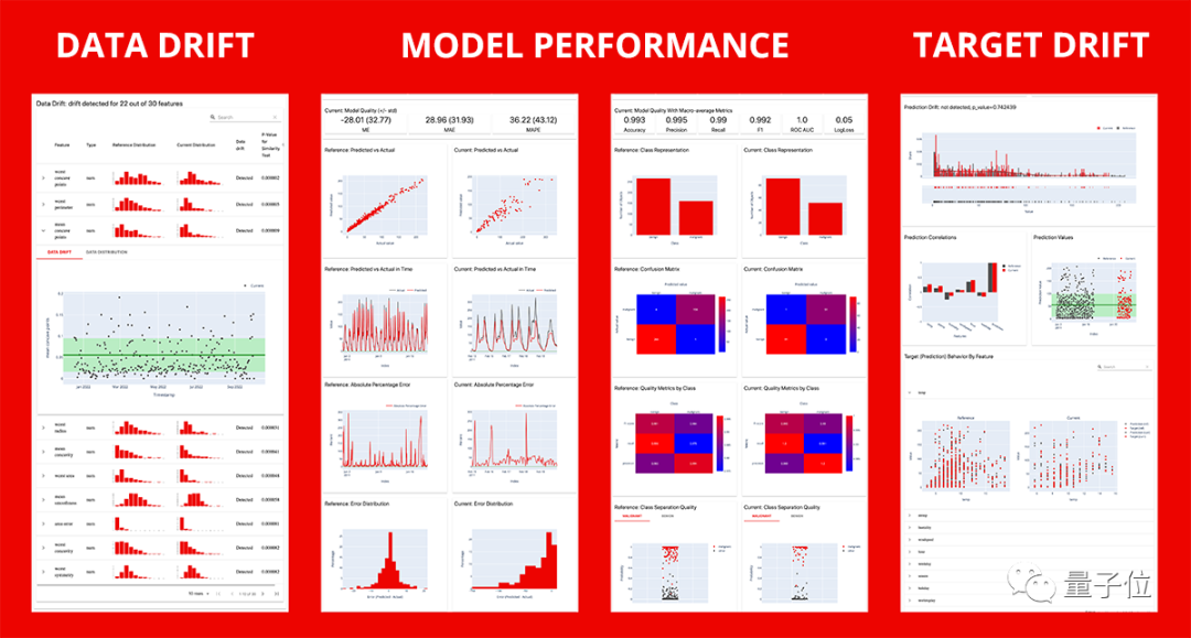 目前可以提供6种报告:数据漂移、数值目标漂移、分类目标漂移、回归模型性能、分类模型性能和概率分类模型性能。