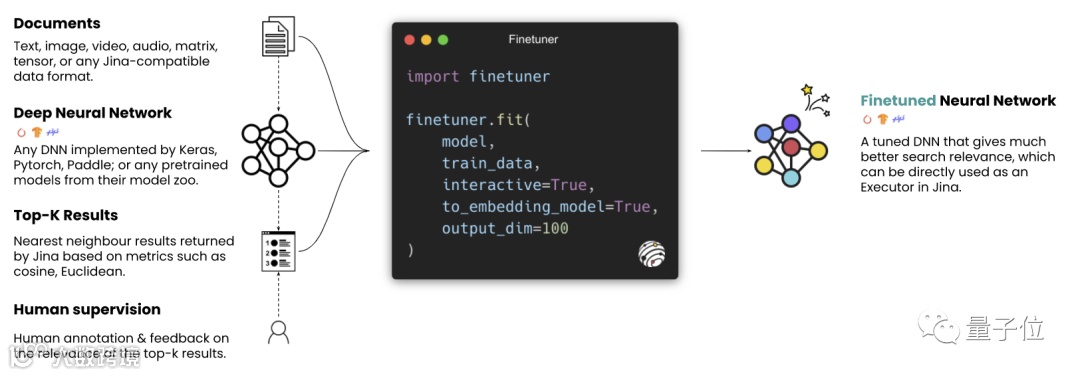 Finetuner配合Jina帮助你对神经网络进行调参,以获得神经搜索任务的最佳结果。