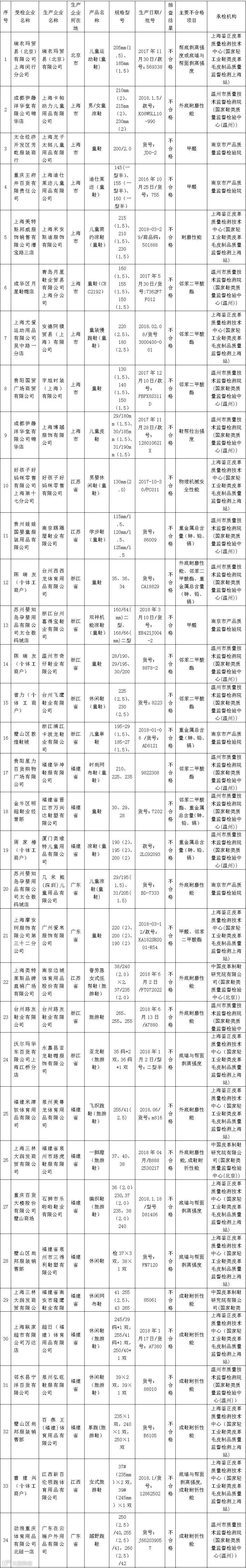 2018年童鞋等10种产品质量国家监督抽查不合格企业名单