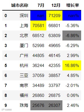 导入2021年12月全国城市住宅房价排行榜的数据,计算增长率等指标。