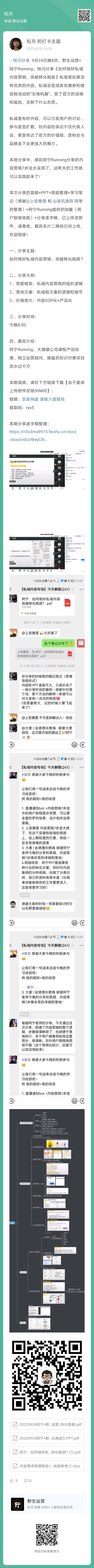 私域里有好内容,可以引发用户的讨论、参与甚至扩散,好内容的表达不仅代表人设,更是传达了官方的价值观,是粉丝与品牌走下去更强大的推力。本场分享中,感叹阿宁Running分享的内容营销7步法太实用了,这两天的工作就可以实践起来了!