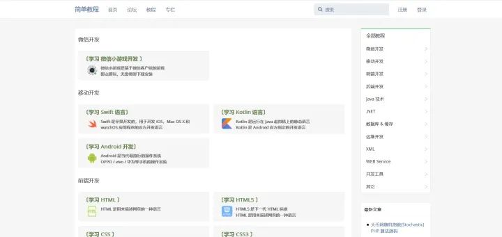 首先列出一些在线教程网站,这些在线教程网站通常都比较适合入门,可以作为开发学习路上的第一个阶梯,也可以作为工作中的在线文档。