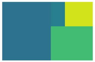 使用**squarify.plot()** 方法构建树状图。这里将随机数据变量data作为此 squarify.plot 方法的参数。此外,附加一行修饰代码 plt.axis('off') 隐藏 树状图 的轴。