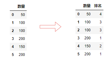 在Pandas模块中, 调⽤rank()⽅法可以实现数据排名。
