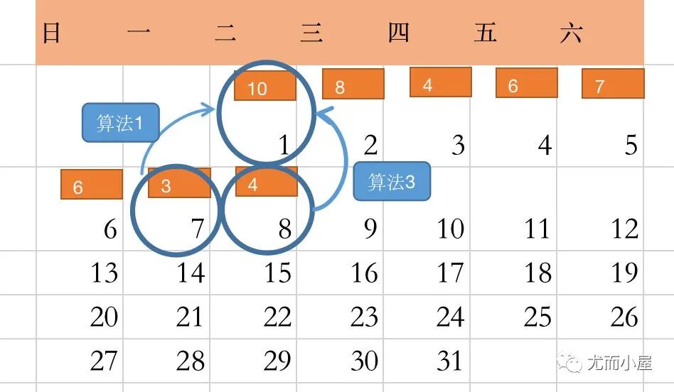 如果使用算法2,7日日留存=下周2的数据/本周2的数据(10)