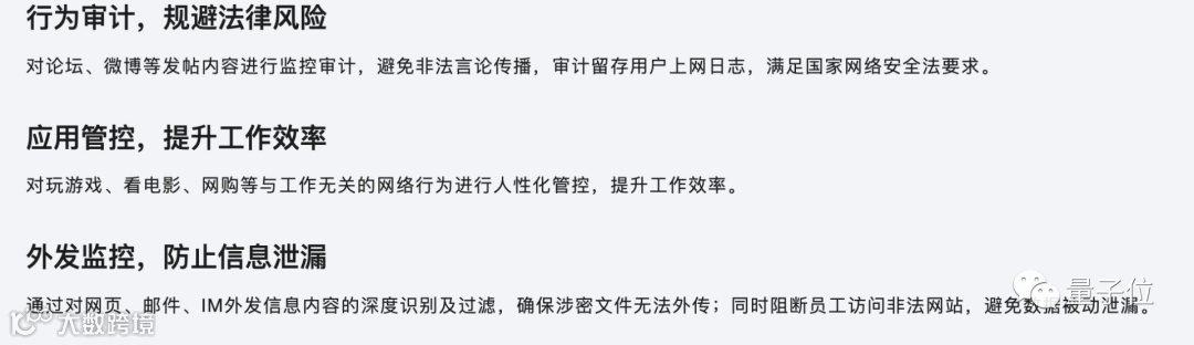 另一家网安公司奇安信,也提供上网行为管理系统服务,据官网介绍,可对企业内部员工的上网行为进行全方位有效管理。