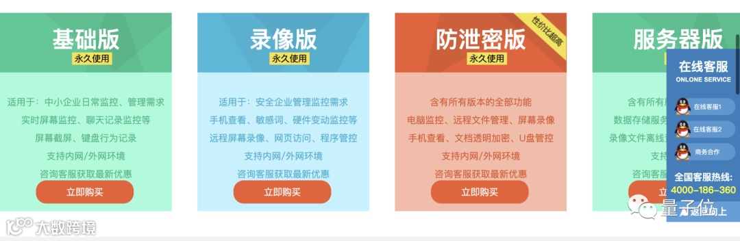有基础版、录像版、防泄密版以及高阶的服务器版。