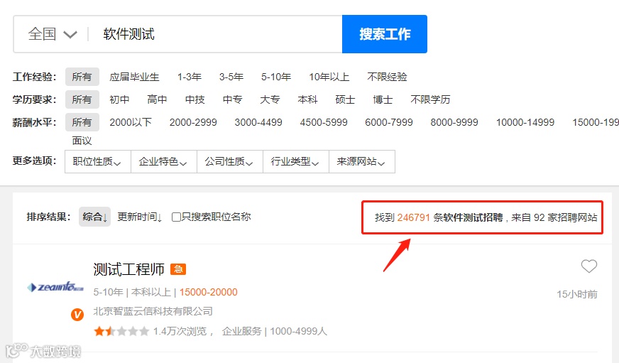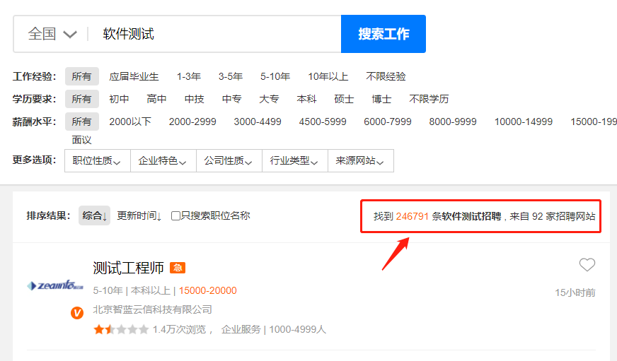 某招聘网站上,Java程序员的招聘量高达9w+、软件测试程序员的招聘量高达24w+!无论是前端、后端、软件测试,IT行业人才缺口量都巨大!