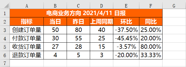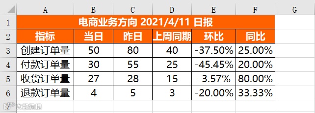 ws['A1'] = '电商业务方向 2021/4/11 日报'