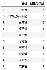 ,columns = ['创建订单量','付款订单量','收货订单量','退款订单量']