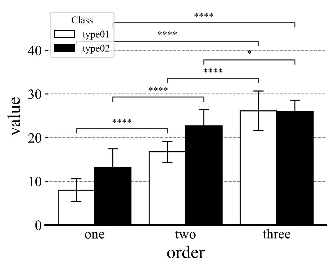 annotator = Annotator(ax, data=group_data_p, x="order",y="value",hue="class",