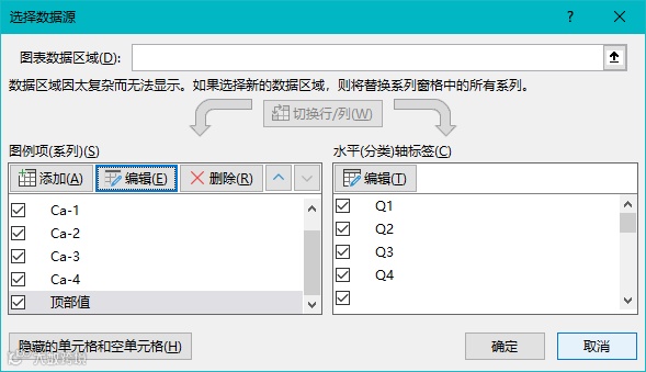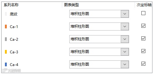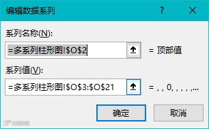Step-05 接下来最重要的一个部分就是如何为每个type加上标签。再添加一个数据系列,即O列,数据类型为堆积柱形图,为主坐标轴。如下图所示: