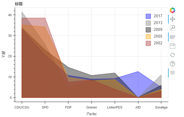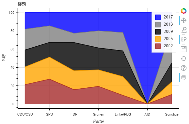 stacked:如果为 True,则面积图堆叠;如果为 False,则在彼此之上绘制图。默认值:False kwargs **:bokeh.plotting.figure.patch 的可选关键字参数