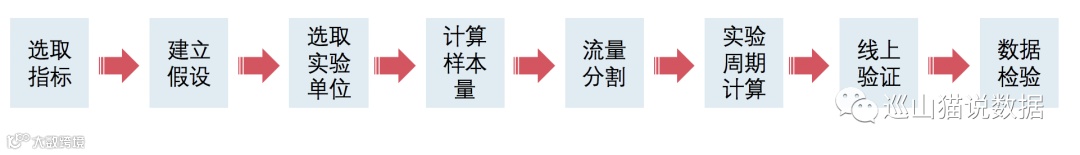 我们得到这个问题,需要脑子里想到AB测试的整体流程图(如下)。