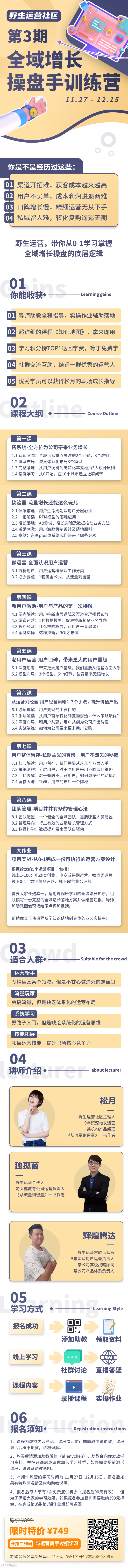 又经过将近快 5 个月的研发和迭代,野生运营的系统课又又又升级了(没错,这是第 5 次迭代),升级为“全域增长操盘手训练营”,加入了流量体系化布局、渠道运营、增长实验及数据驱动、增长项目及团队管理等新内容。全域增长是目前可抄作业的“结构性增长”,打破结构,才能事半功倍,突破运营性增长的天花板。