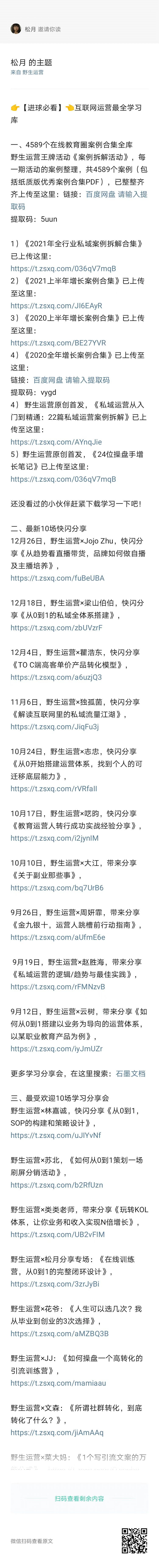 彩蛋时刻:通过20几期案例拆解训练营,野生运营知识星球已经沉淀了 4000+ 个案例拆解,包括电商、新消费、在线教育、私域、全域等行业,覆盖拉新、促活、变现、留存等用户生命周期运营各环节,已经为你整理的整整齐齐了,扫码即可领取👇