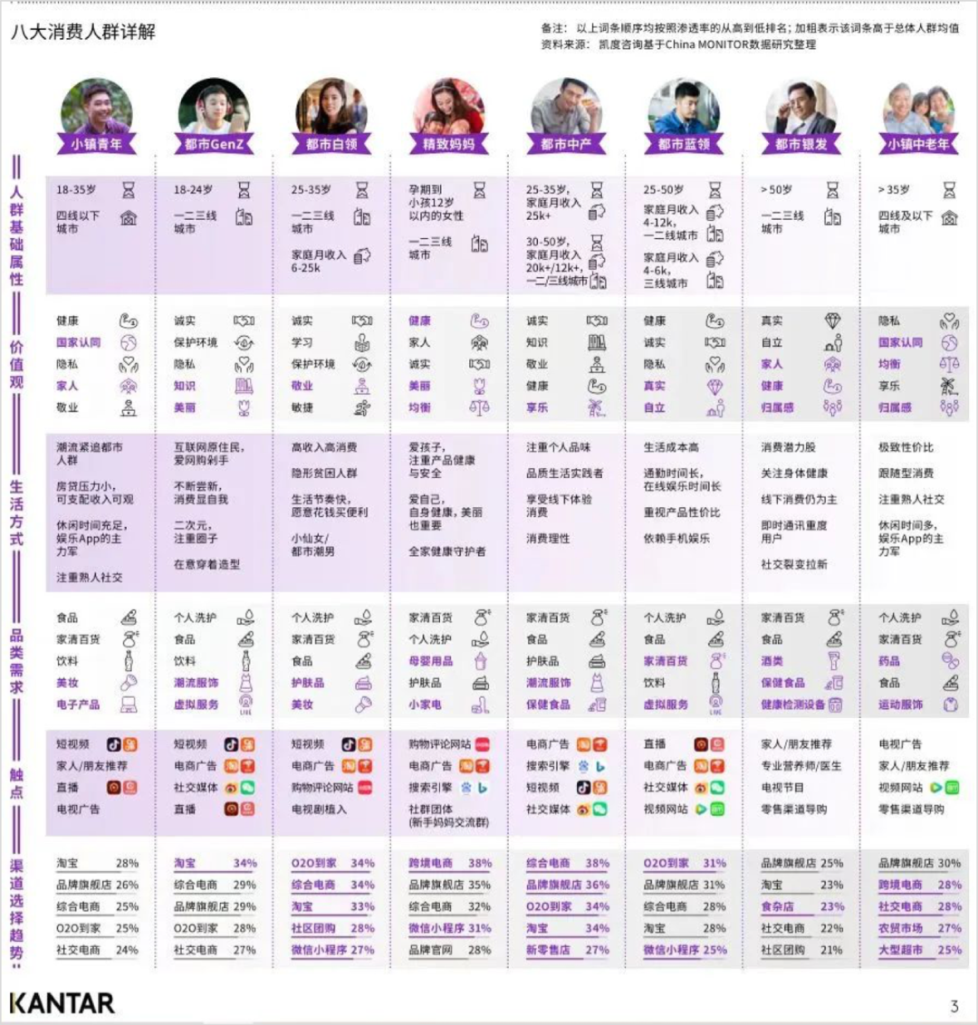 然后我们在做拆解的时候,其实要看活动的主要在哪些平台上做,这些平台里,哪些才是目标用户群体。一般可以通过去搜索对应平台的各种分析报告,比如下图天猫的八大人群用户画像等。