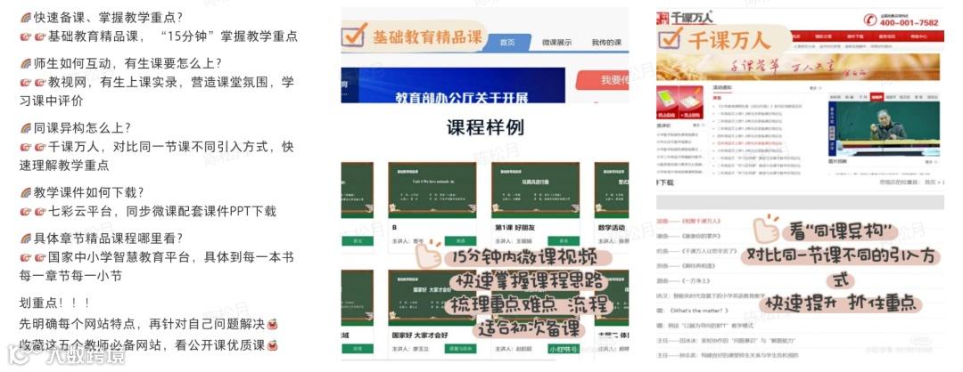 例如,教师行业的爆款笔记就是“网页分享”,普通笔记是:单纯网页名称+截图+堆叠,但是问题在于没有“可操作性”,不利于用户抓住每个网页特点。