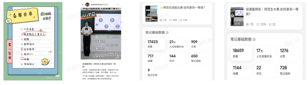 这是我发的第一篇笔记“预告篇”,当天就爆了,直接转粉600+,为后续的笔记都打下了基础;之后又发布过一个“说课预告篇”,转粉700+。可以间隔一段时间,在上一个主题笔记结束后,对下一个分享的系列主题都做一个“预告篇”,提高转粉率。