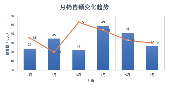 组合图表是在一个图表中应用了多种图表类型的元素来同时展示多组数据。组合图可以使得图表类型更加丰富,还可以更好地区别不同的数据,并强调不同数据关注的侧重点。下图所示为应用柱形图和折线图构成的组合图表。