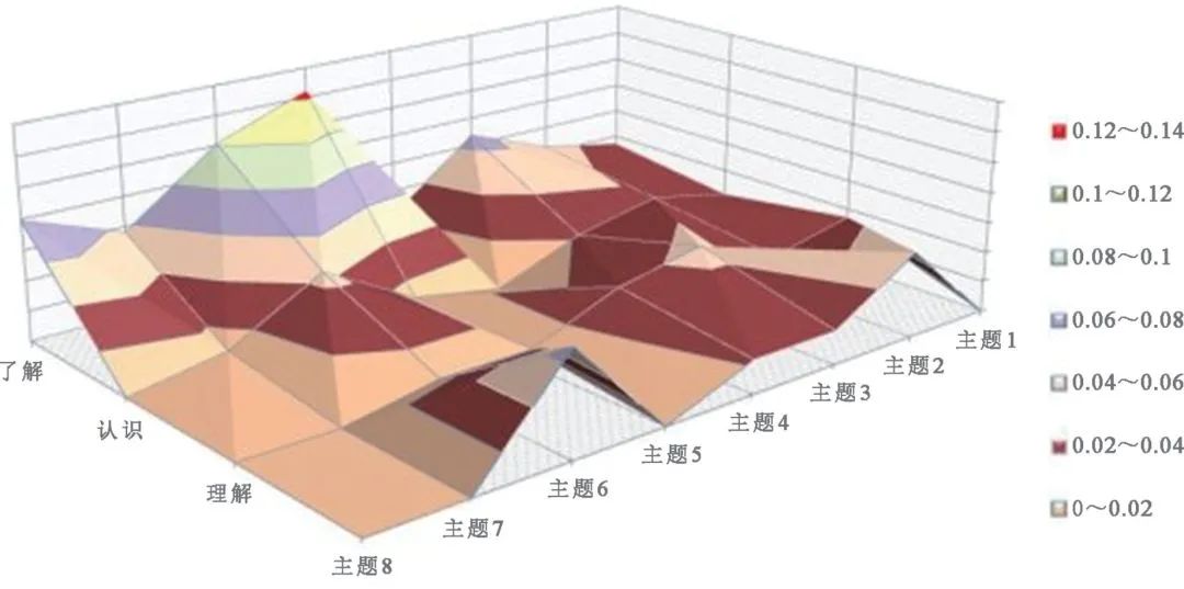 曲面图好像一张地质学的地图,曲面图中的不同颜色和图案表明具有相同范围值的区域。与其他图表类型不同,曲面图中的颜色不是用于区别【数据系列】,而是用于区别值的。