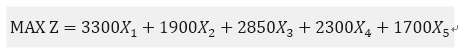 通过以上的案例我们可以知道以上五种品类的销量是变量,设10000万销售为一个单位销量,那么每个品类科的销量的单位变量分别为X1 , X2, X3, X4, X5,.
