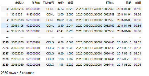 data['商品ID']=data['商品ID'].values.astype('str') #将该列转换为字符数据类型
