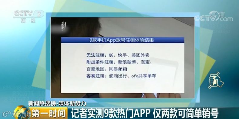 记者选择了9款热门手机应用程序来做体验,注册过程都非常简单,只要提供手机号码就能完成,但注销账号就没那么容易了。其中三款手机应用程序明确表示,不提供账号注销服务。