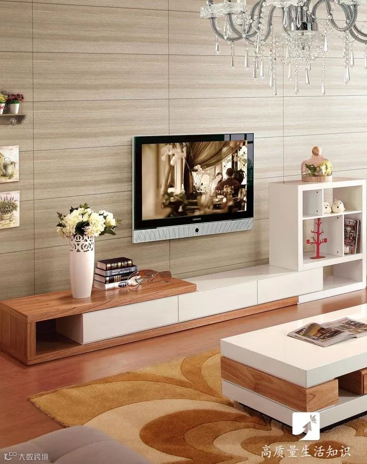 3、电视机需要接电源线、信号线,如果要把电视机挂墙上,没有提前布置暗线的话,那么这些电路都会外露在中间,非常不美观,而放在电视柜上就比较合适了。