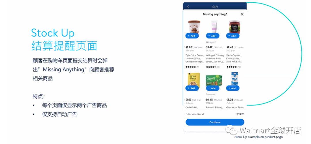沃尔玛广告里面的stock up是经常被问起到底是什么功能以及展示的位置是在哪?其实stock up就是结算提醒页面,如下图介绍所示: