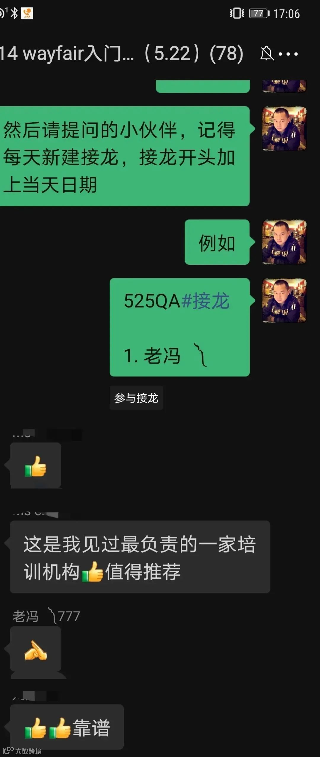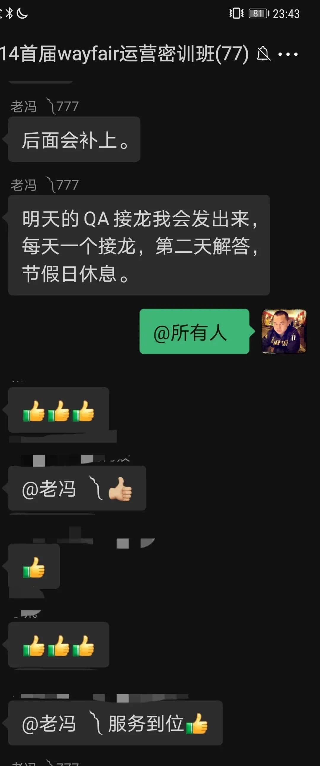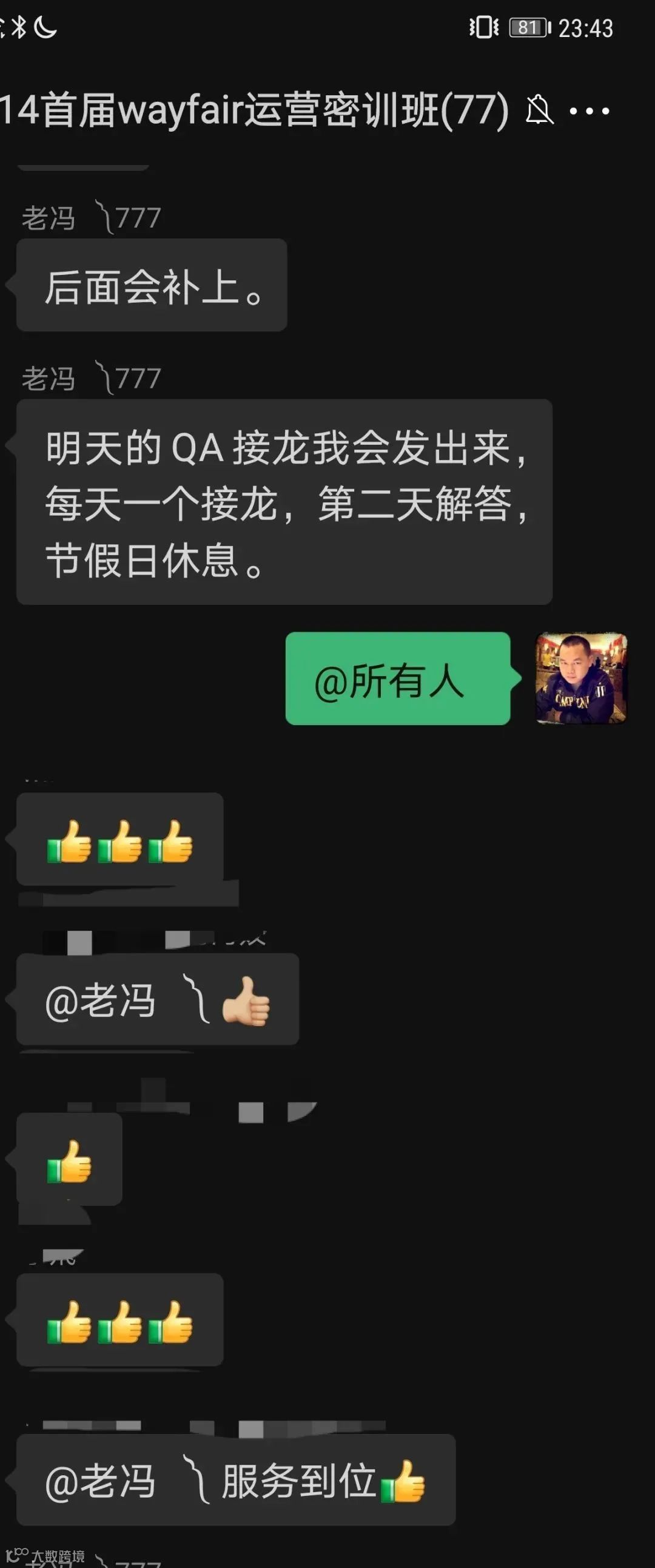 “从wayfair平台规则到wayfair运营的每一环节,从wayfair的商业逻辑到与平台人员打交道的注意事项,冯总的培训干货满满 : )