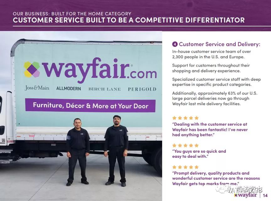 前身CNS销售额暴增,积累了很多资源的同时,却给用户带来糟糕的购物体验,于是两位创始人狠心关闭240多个家居购物网站,整合建立一站式家居购物平台;2014年,不负众望,wayfair在纽交所成功上市。
