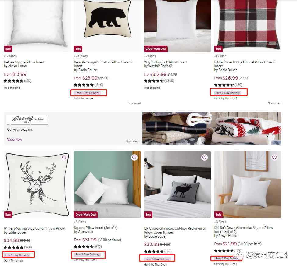 怎么获得Wayfair的一日达或两日达标志?