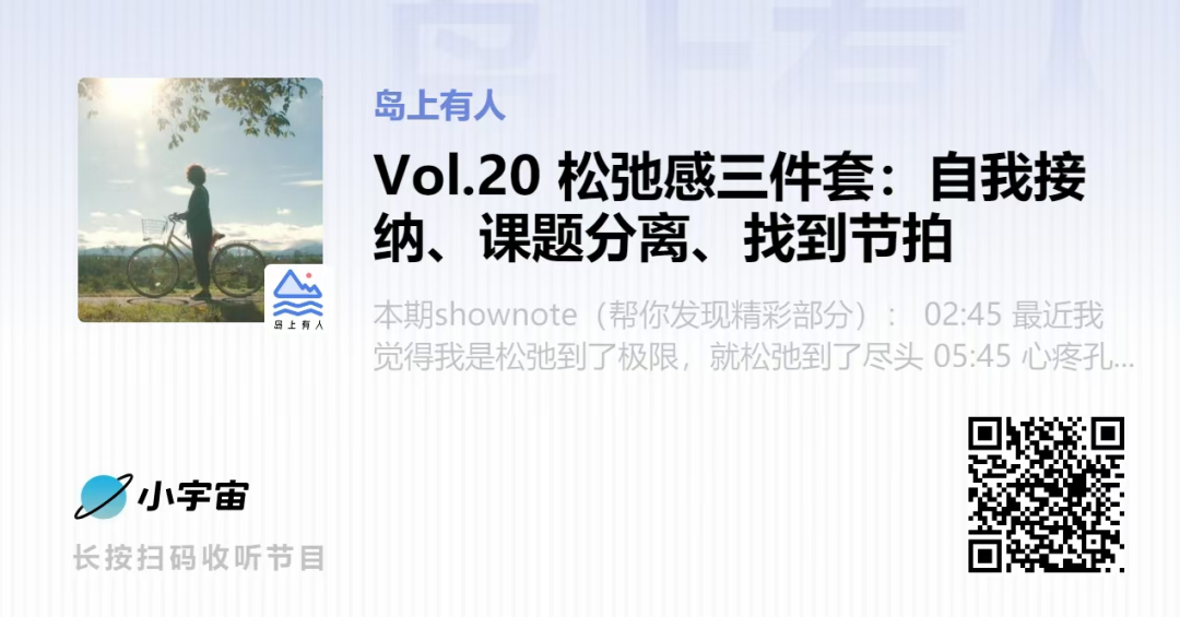 最近录了一期关于“松弛感”主题的播客,我承认自己真的不是一个松弛的人,但算得上一个有张力的人吧。在录制播客的时候,我突然有了个感悟:不要因为别人影响了自己的节奏,因为你们可能压根不是在比一个比赛。