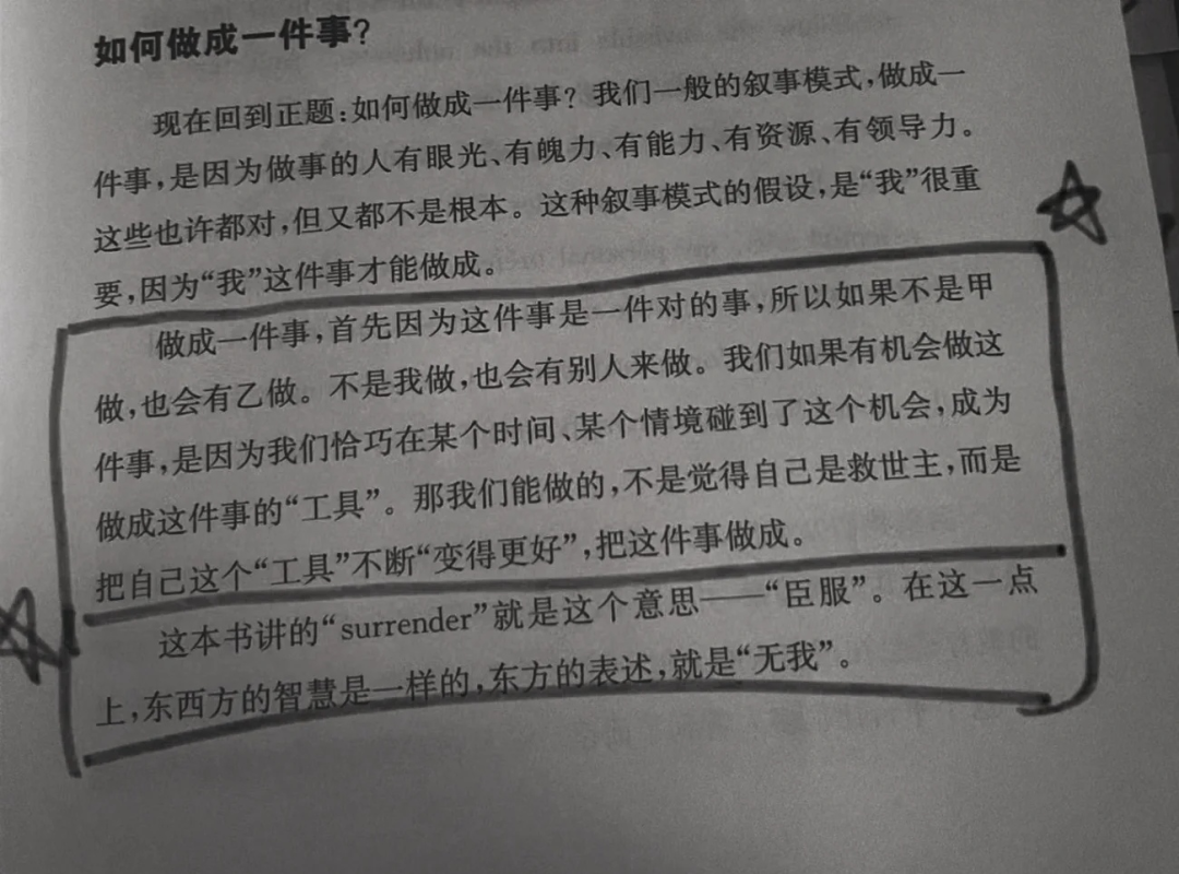 这句话让我放弃了我执,也降伏自己的胜负心和傲慢感,我只是某种强大力量支配下的“工具”,所以尽管努力的顺势自然,无需焦虑未来。