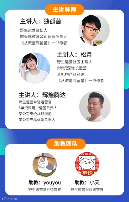 这次课程,主要由我和独孤菌进行设计,并联合运营官一起做好训练营的服务交付,经过好几期训练营的磨合,整体的交付体验已经打磨的非常舒服了,只等你的到来!