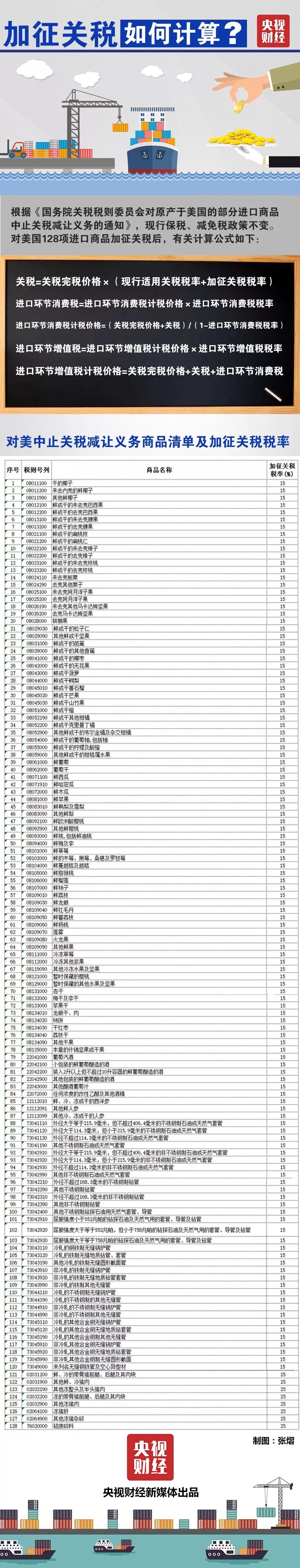 经国务院批准,中国国务院关税税则委员会决定对原产于美国的部分进口商品中止关税减让义务,自4月2日也就是今天起实施。
