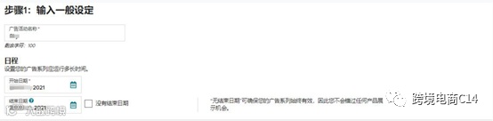 给这一个广告活动起一个名字,输入起止时间,如果点击没有结束日期,则广告会无限期进行