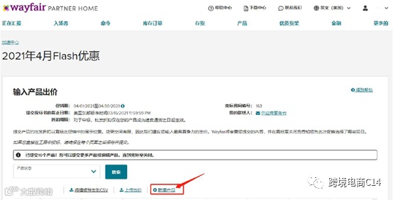 促销是Wayfair平台提供的打折提升销量的工具,对短期内销量提升有明显作用。我们可以参加平台官方的促销活动,每个月都有,加入活动的方式也可以提交Ticket,在前面教程中有讲到,也可以在Products这里。