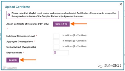 注:所有的保险证明必须通过Wayfair的审核。审核过程需要24到48小时。