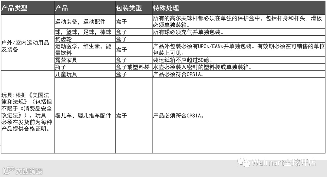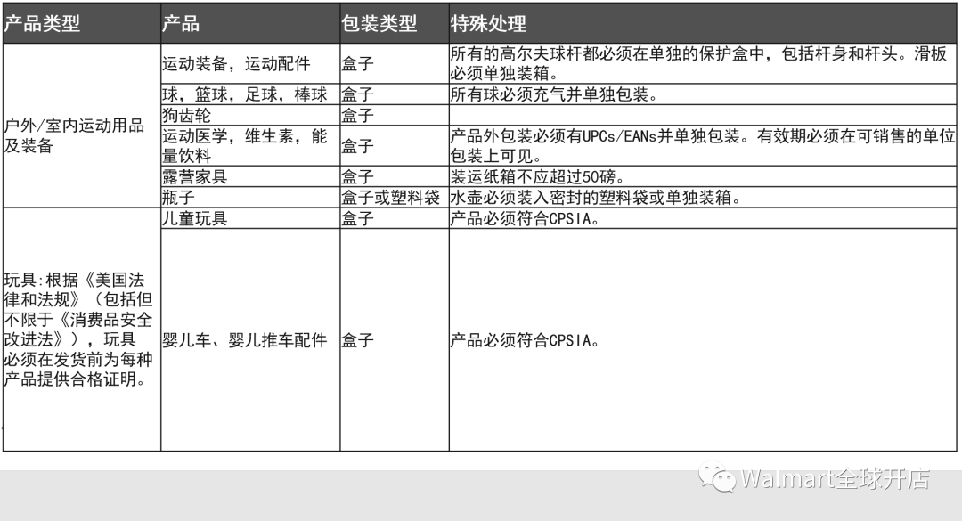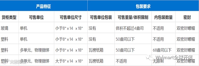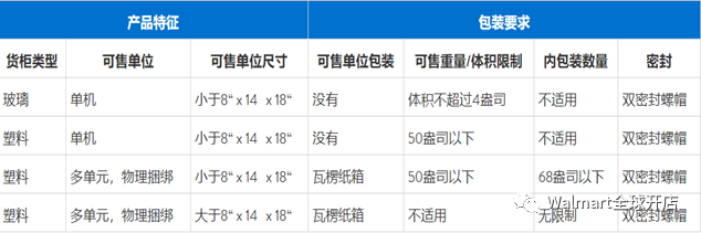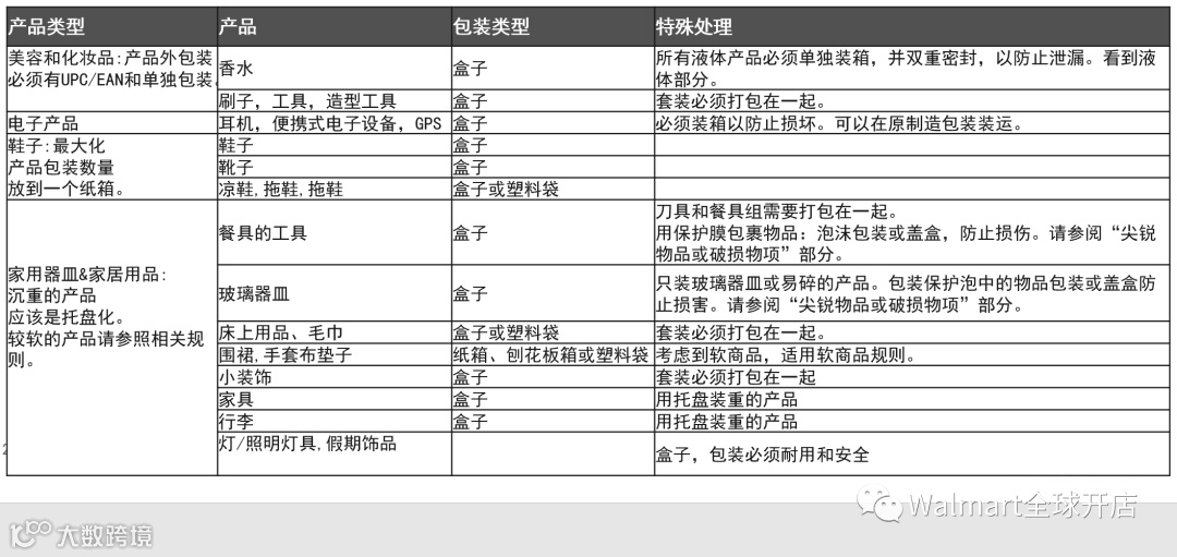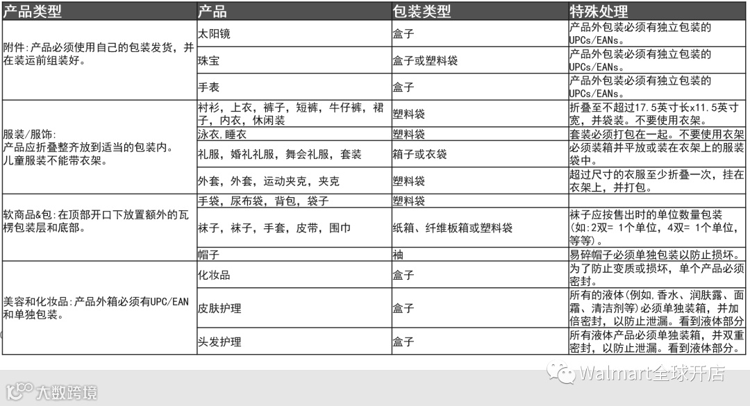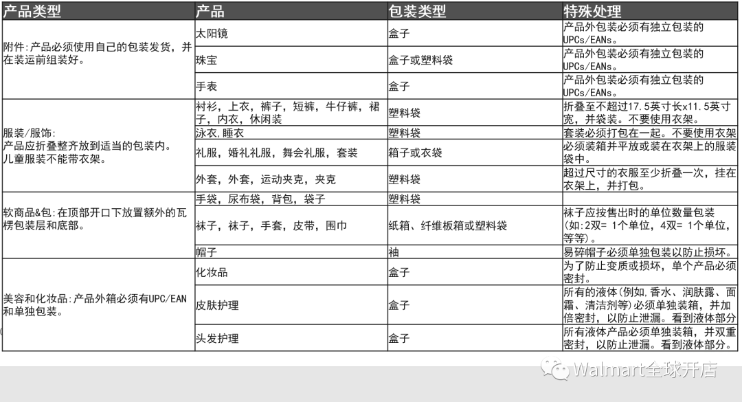 涉及到各个品类,请参照各品类包装说明细项。任何产品,如果不符合表格中所列各品类的特性和相关包装要求,沃尔玛可能会拒收并退回,卖方承担费用,另外还要支付手续费。