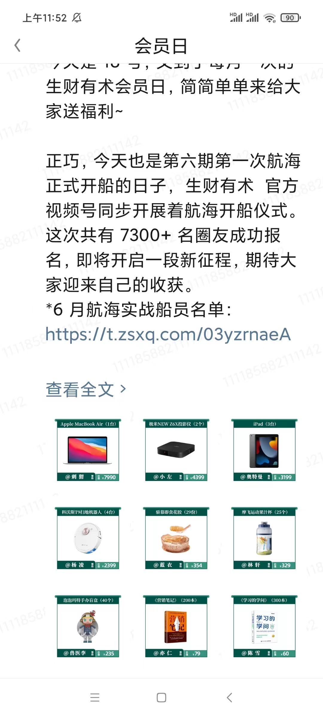 生财找各种形式的赞助商,当然如果是圈友赞助商,有品牌曝光需求更好。拿到各种真实的、有价值的福利,在会员日当天送给生财有术圈友。过去一整年的生财有术会员日,累计送出去的各种福利超过百万。